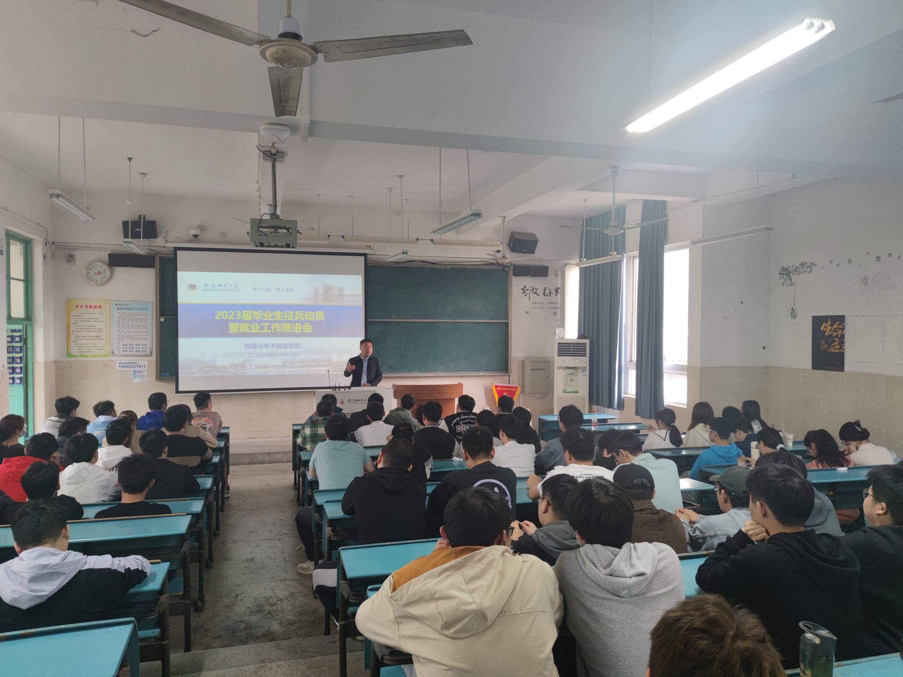 组织召开2023届毕业生征兵动员暨就业工作推进会,学院党委副书记黄友生、全体本科毕业班辅导员及未落实工作单位的毕业生参加会议。
