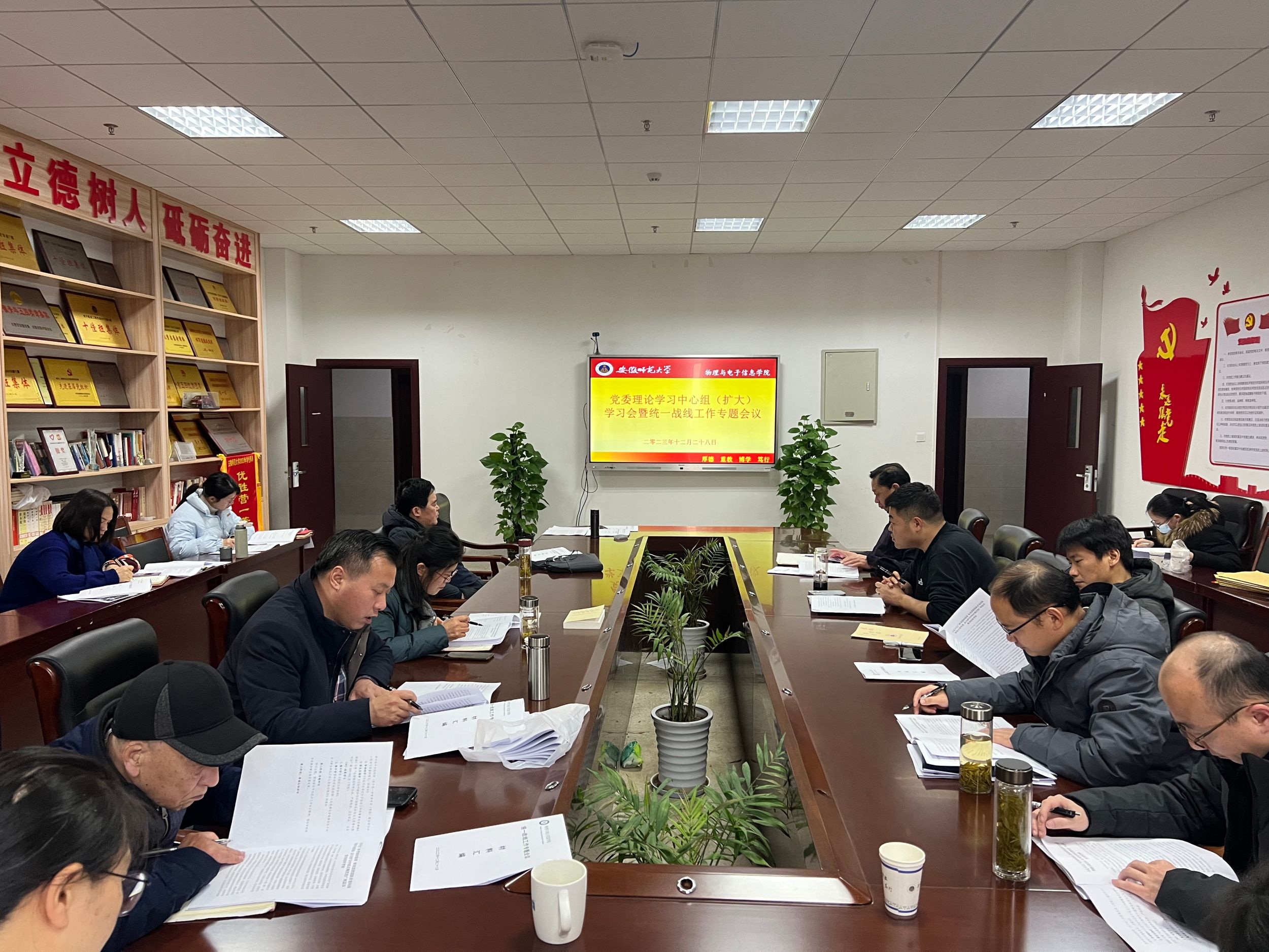 党委召开理论学习中心组(扩大)学习会暨统一战线工作专题会议。院领导班子成员、党委委员、纪委委员、支部书记参加会议。院党委书记李娟主持会议。