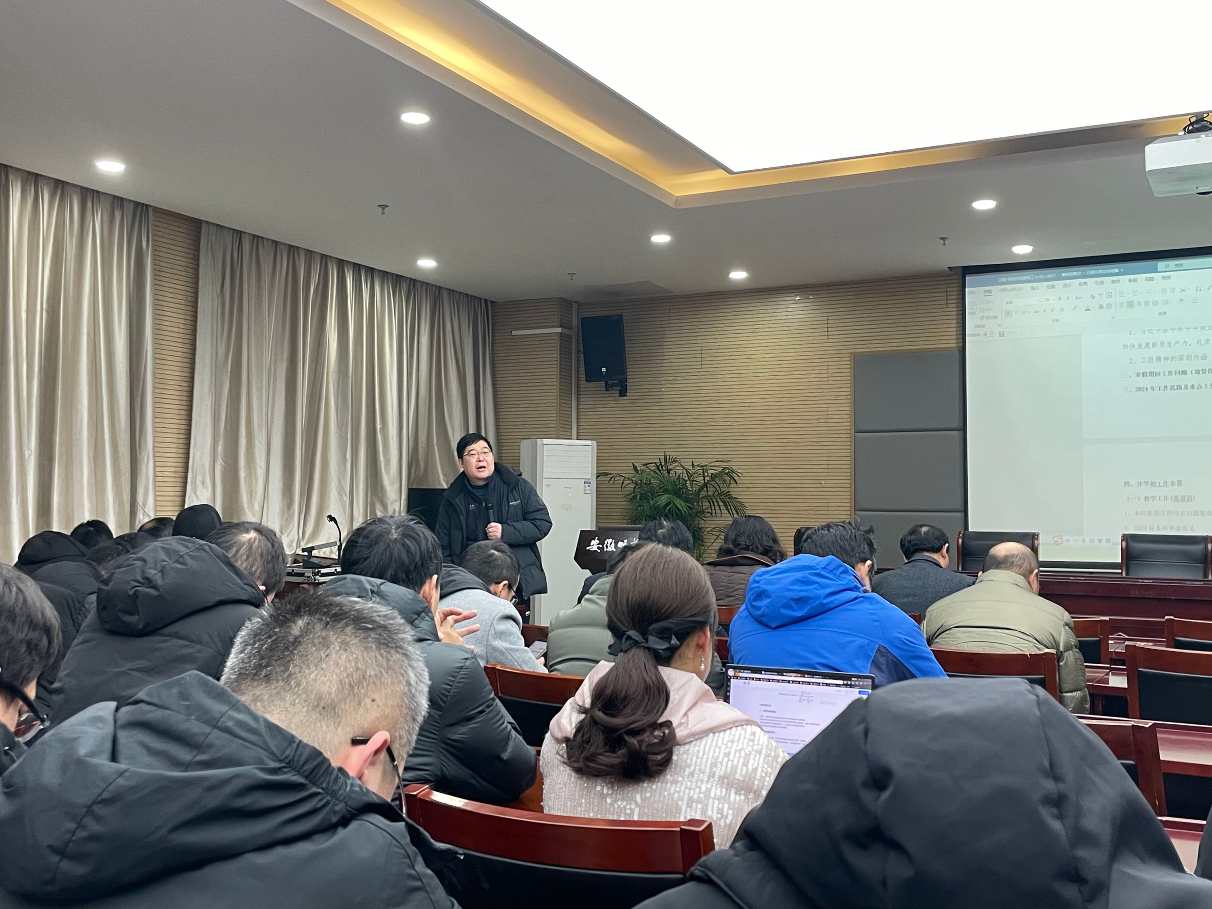 李娟在总结讲话中指出,2024年是学院实现“十四五”事业发展规划目标任务的关键一年,我们要继续深入学习贯彻习近平新时代中国特色社会主义思想,不断巩固拓展主题教育成果,坚持稳中求进工作总基调,统筹高质量发展和高质量安全,推进“三大行动计划”取得实效;要认真学习领会上级的有关会议精神,自觉筑牢思想防线,遵守教师职业规范,严守师德底线,担当尽责,奋勇前行,高质量完成2024年学院的目标任务,不断推动学院事业发展取得新业绩、实现新突破。