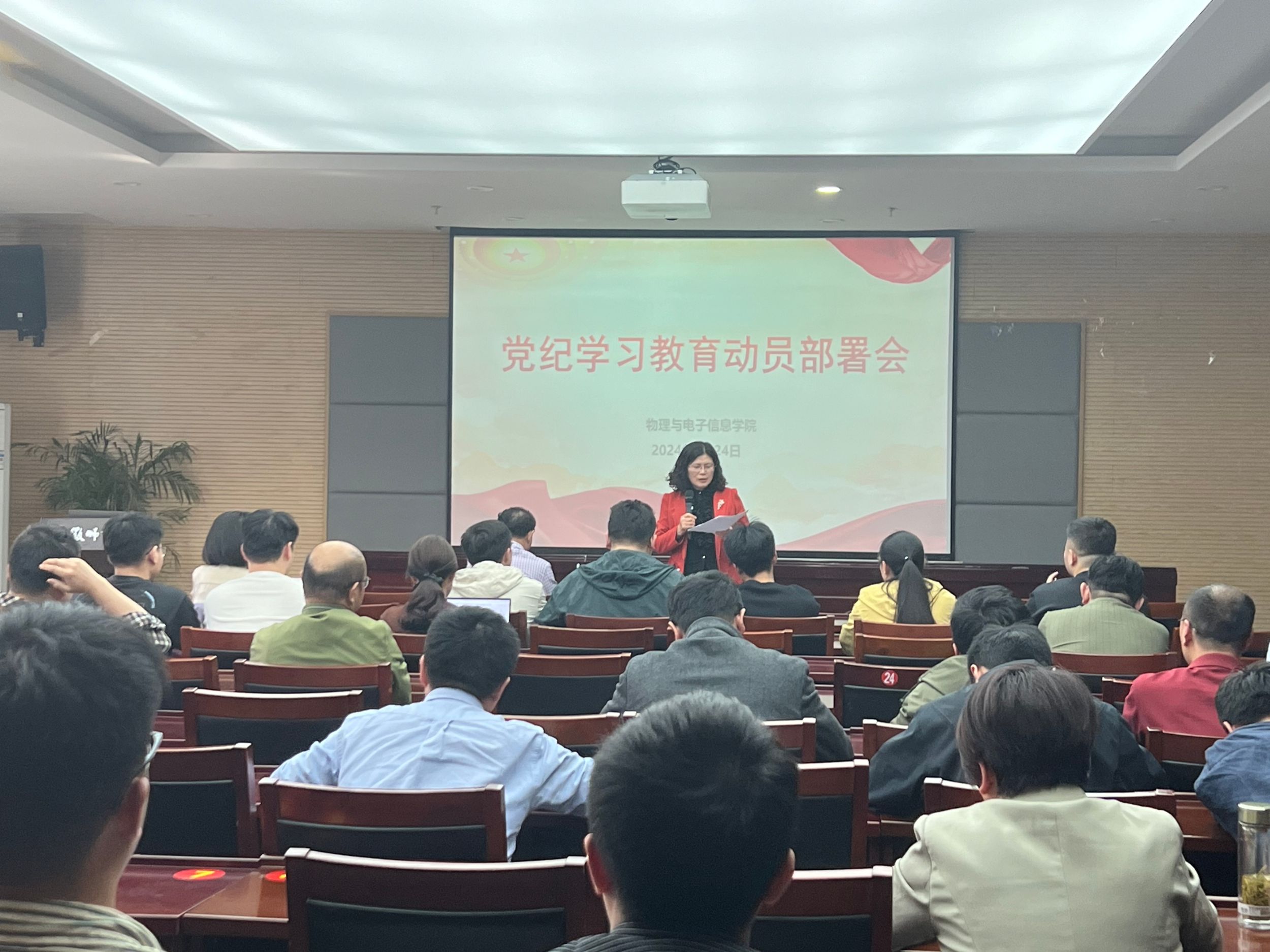 召开全体党员大会,传达学习习近平总书记关于党纪学习教育的重要讲话和重要指示精神以及上级有关会议文件精神,动员布置学院党纪学习教育工作。会议由学院党委书记李娟主持。院党委委员、纪委委员、党支部书记、教工党员,学生党员代表参加会议。