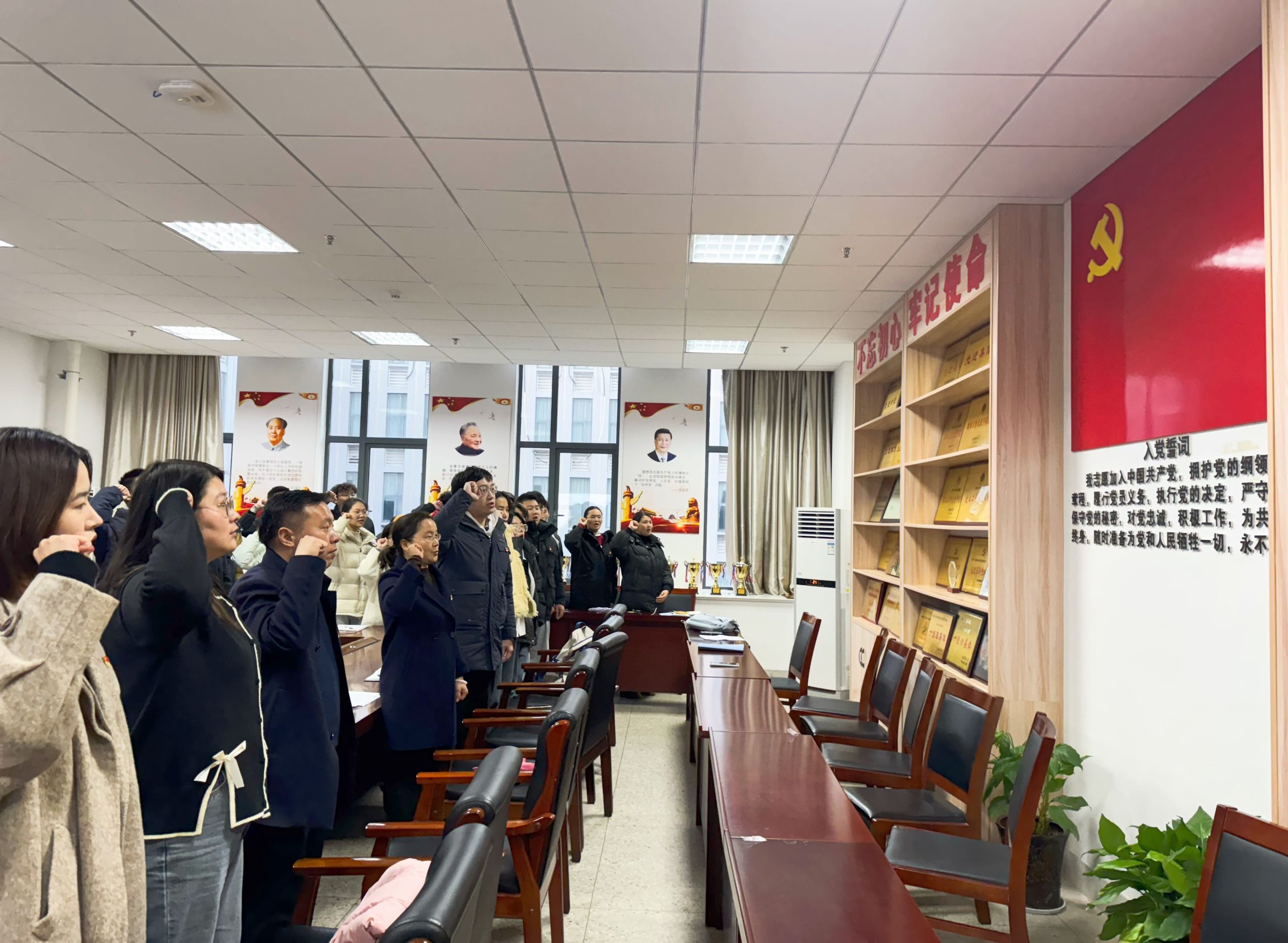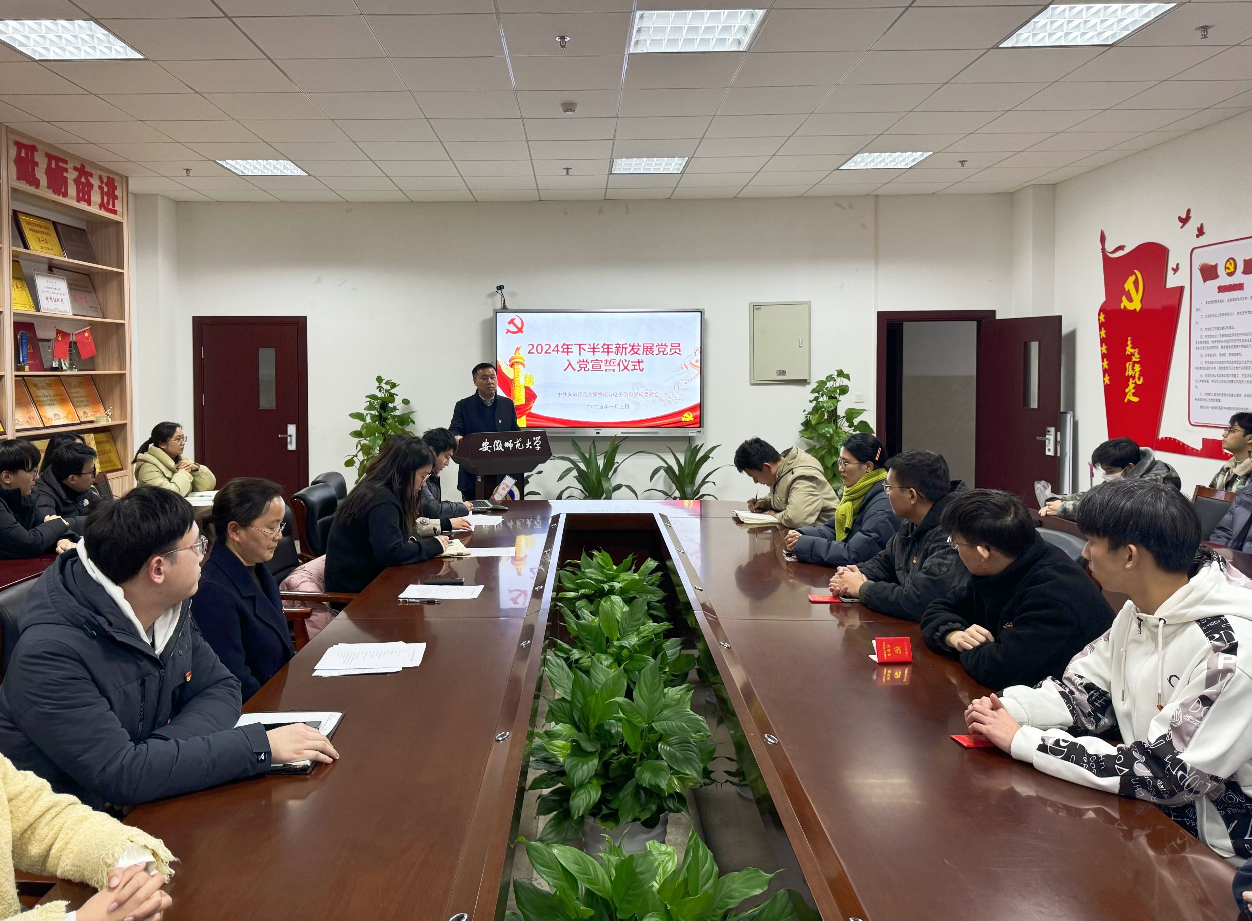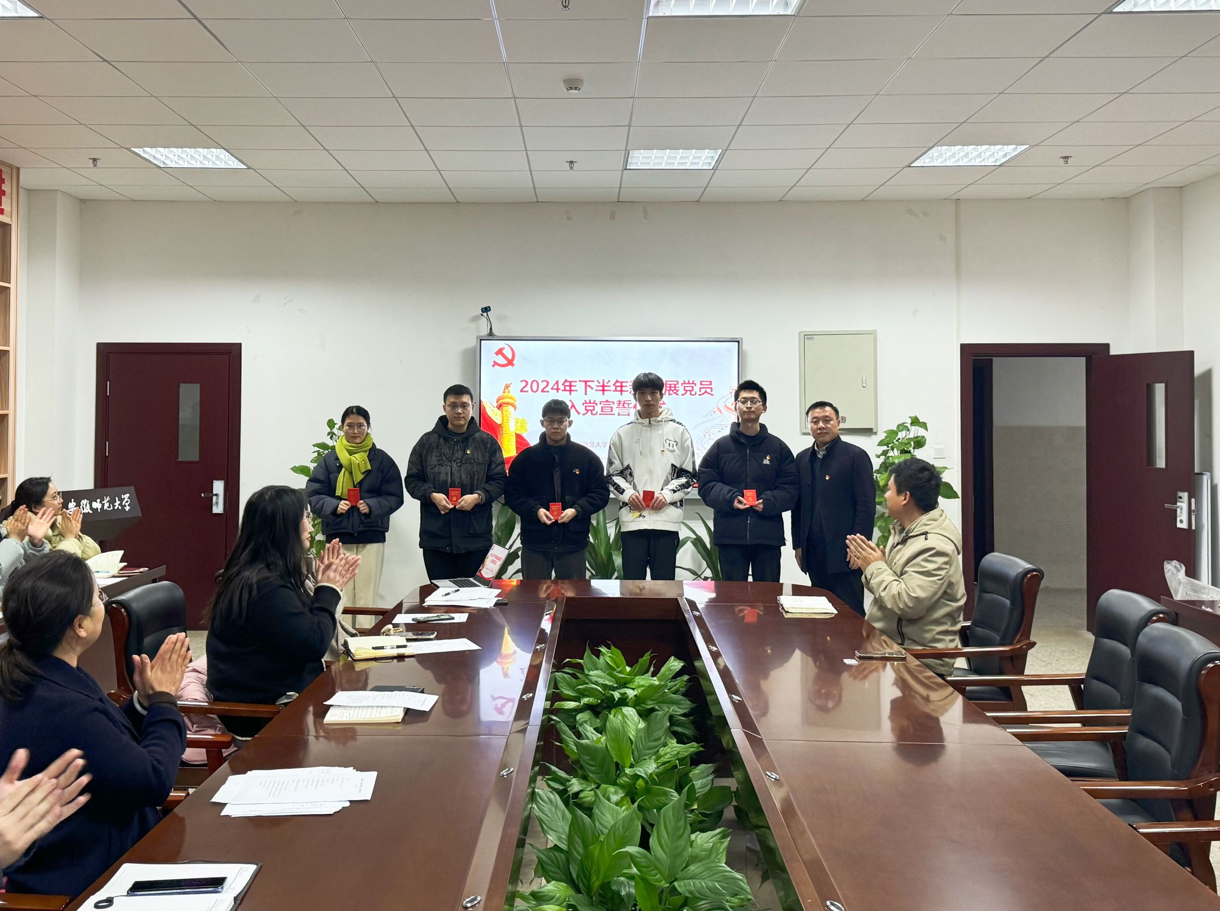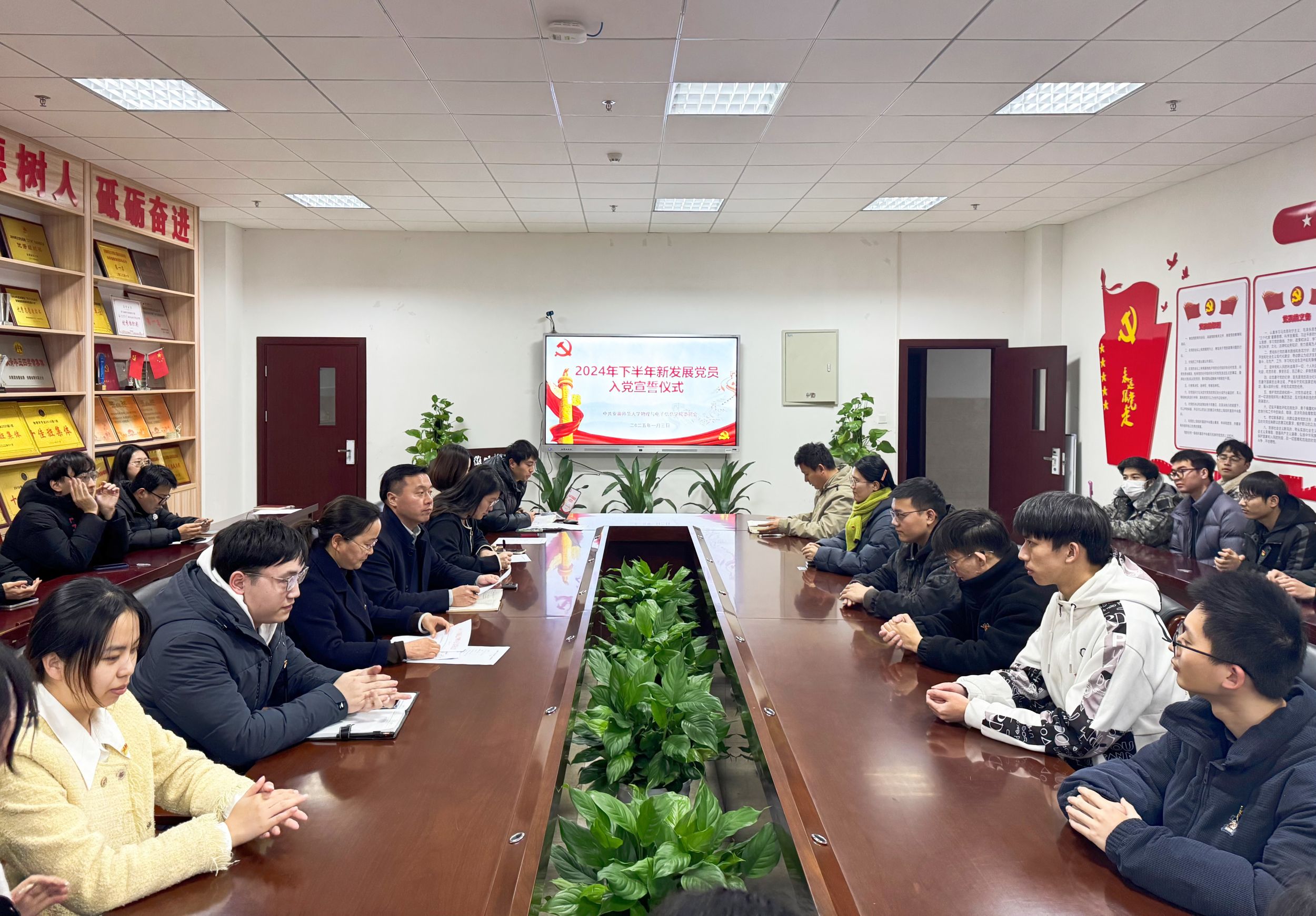 于物理楼 308 会议室举办2024年下半年新发展党员入党宣誓仪式。学院党委副书记黄友生、组织员王梦晓、各学生党支部书记、2024年下半年新发展党员参会,会议由物理学本科生第一党支部书记曹阳主持。