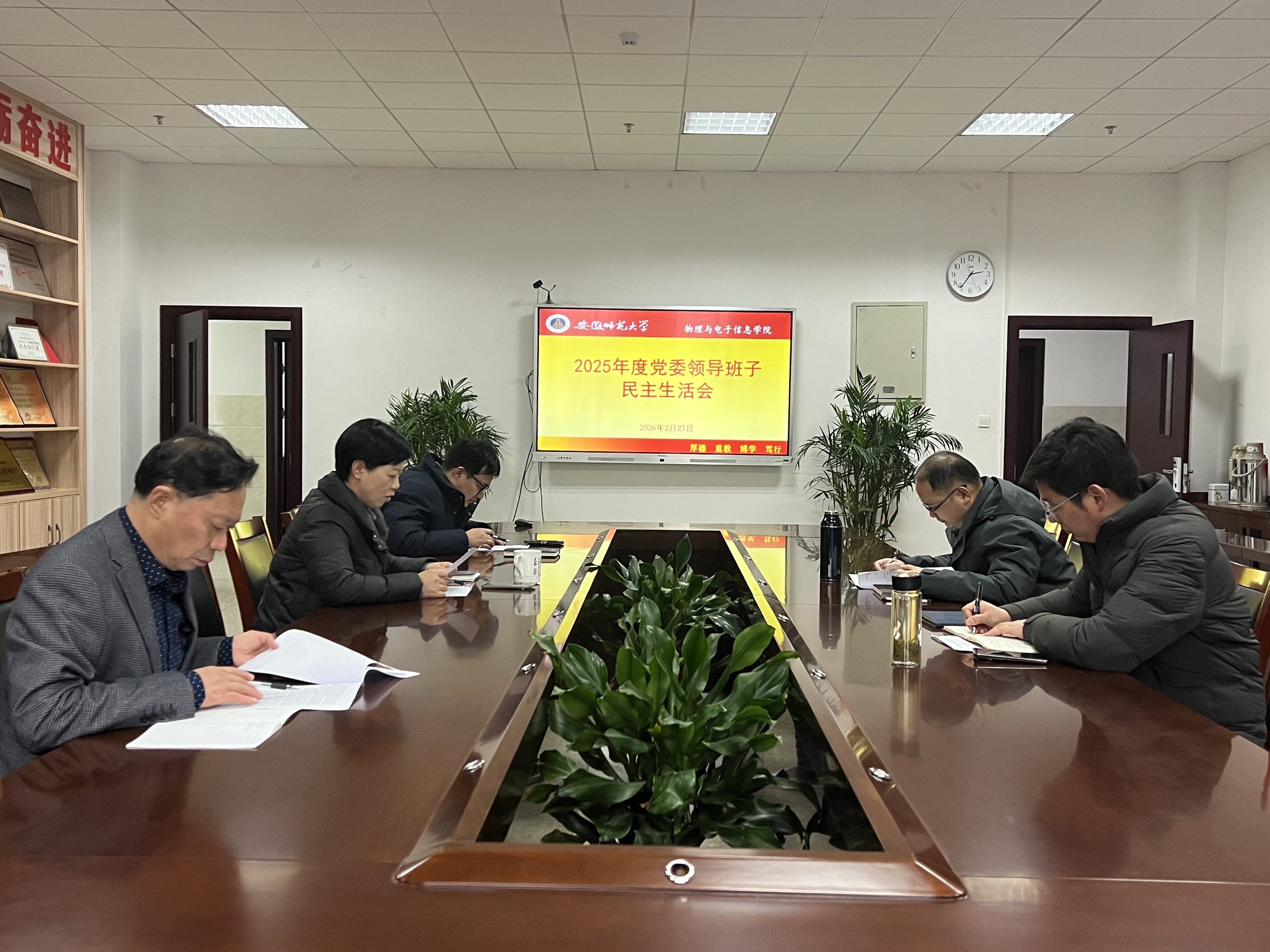 党委领导班子在物理楼三楼党员活动室召开2025年度民主生活会。会议由学院党委书记宋静主持,学院党委领导班子参加会议,组织员列席会议。