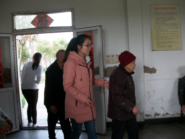 组织多名大学生去敬老院看望老人。同学们为老人们带去了香蕉、橘子等水果并与陪老人们聊天;有的同学给老人们演唱了“甜蜜蜜”、“走进新时代”、“父亲”等歌曲;也有的同学们为老人们表演了太极拳。看到老人们脸上洋溢着笑容,同学们也感到很欣慰,他们表示今后一定常来。