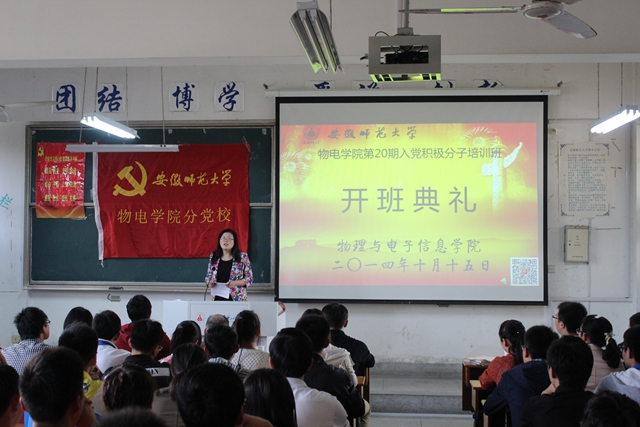 典礼在嘹亮的国歌声中拉开了帷幕。院党委书记李娟对参加入党积极分子培训班学习的学员表示热烈的欢迎与祝贺,并对院党校党员老师的辛勤工作表示感谢。她说,学院党委十分重视发展和壮大党员队伍,力争通过学习培训,帮助入党积极分子在各方面有较大的收获和提高,争取早日加入中国共产党。并对本期培训班学员提出端正态度、科学安排、严格要求、注重实践等四点希望。最后她要求学员端正入党动机,认真学习和宣传党的方针路线。