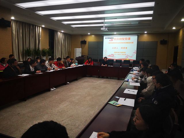 郑贤锋开场便结合自身留学、科研和工作等经历,从政治思想、学习科研、日常生活、学术道德等方面详细阐述了如何发挥研究生党员的先锋模范作用。他对研究生党员提出四点要求,一是提升自身修养,树立优秀榜样。研究生党员应不断提高政治理论水平,端正学习态度,提高科研能力,充分利用学院平台,开阔眼界;二是从小事做起,发挥模范作用。一名党员就是一面旗帜,要从点滴做起,从小事做起,发挥党员在学习、生活、科研等方面的引领作用;三是密切联系群众,架起沟通桥梁。学生党员既是党组织在学生中的形象代表,又是学生群体的一员,要发挥好沟通学生和学院的纽带桥梁作用,向上反映的学生愿望和意见,向下传达学校、学院的政策和要求;四是遵守科研规范,恪守学术道德。研究生是我国科研人员的储备军,要严格遵守科研道德,坚持学术诚信,创造良好的学术研究环境。最后,郑先锋在总结中勉励大家从现在做起,从身边做起,严于律己,充分发挥研究生党员的示范引领作用。近一个多小时微型党课中,党员们畅所欲言,气氛热烈。