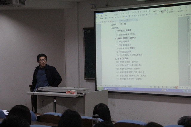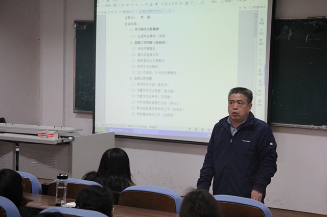学科竞赛实施暂行办法,阐述了学科竞赛对学生考研和就业的帮助,号召全体教师积极参与到学科竞赛指导和推荐学生就业的工作中来。行政副院长张其芳对联合实验室项目申报工作、学院搬迁工作进行布置,并对实验室项目申报相关材料的提交和学院搬迁注意事项进行了强调。