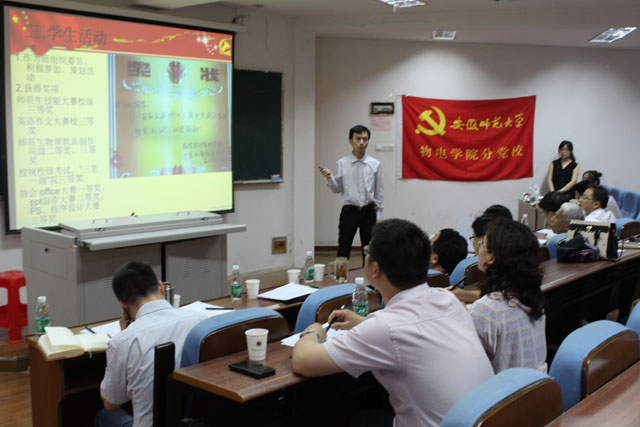 2012级本科生党支部举行了党员发展对象公开答辩会。校党委组织部副部长谢超峰,学院党委委员李娟、吴长义、甘为民、丁绪星、郑贤锋、崔光磊,党支部指导教师卢秉嵩,各学生党支部书记,学生党员和入党积极分子代表,以及24名拟发展对象参加了本次答辩会。答辩会由党支部书记廖仲明主持。