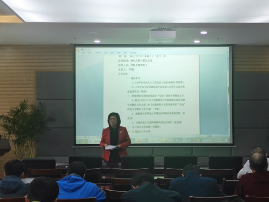 在物理楼304会议室召开政治理论学习教育大会暨下一阶段工作布置会,学院全体教职工参加会议。会议由学院党委书记李娟主持召开。
