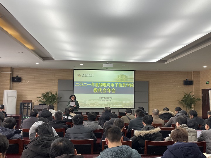 在物理楼304会议室召开2021年度教代会年会,全体教职工共聚一堂,共同回顾总结学院2021年度工作,会议由学院党委书记李娟主持。