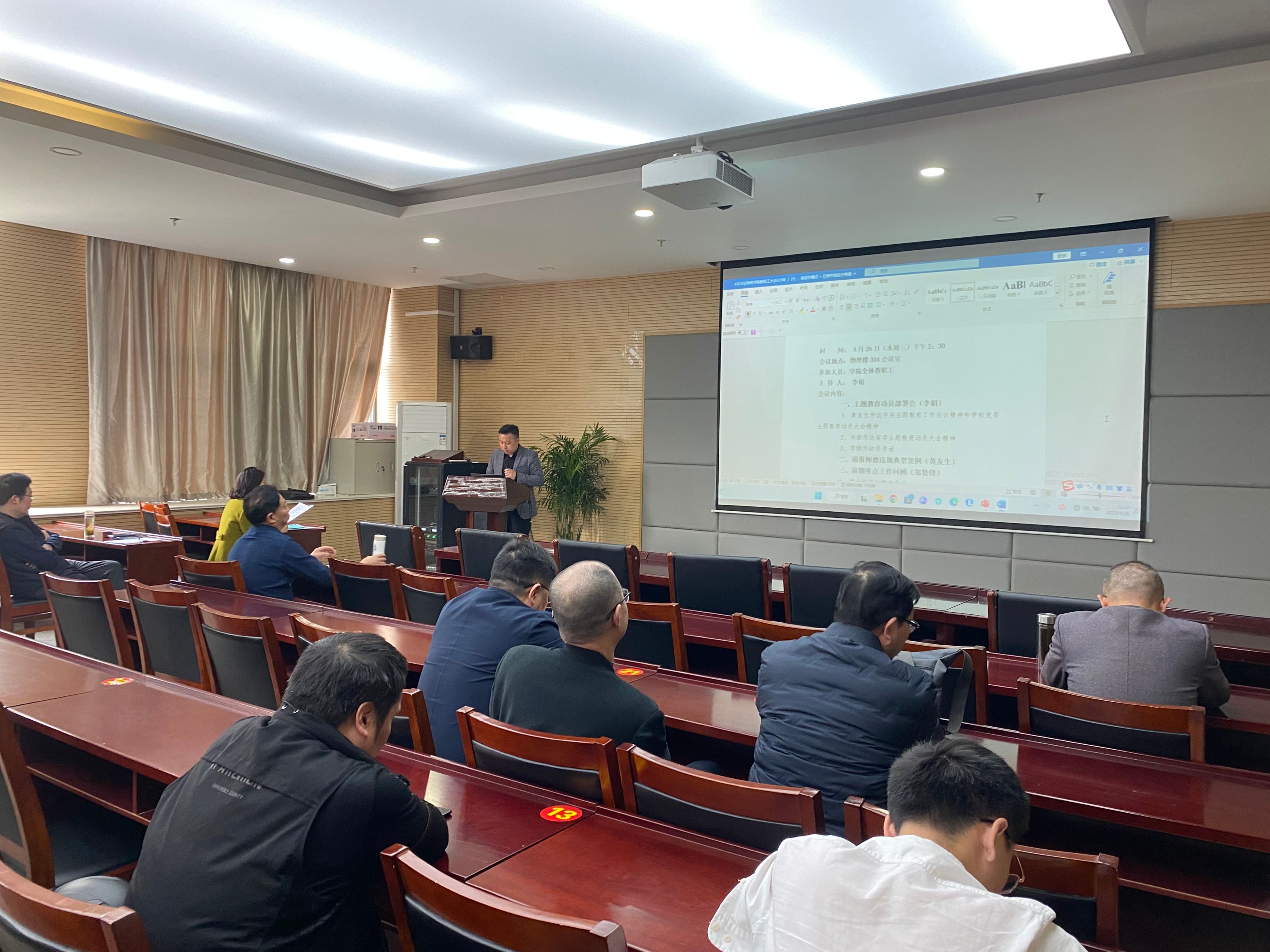 在物理楼304会议室召开学习贯彻习近平新时代中国特色社会主义思想主题教育动员会,学习传达贯彻习近平总书记重要讲话及中央、省委、学校主题教育工作会议精神,动员部署学院主题教育工作。院党委书记李娟主持会议并作动员讲话。学院领导班子、党委委员、党支部书记、教职工党员及学生党员代表等参加会议。