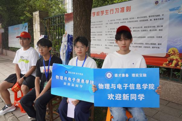 各学生党支部党员踊跃站在迎新第一线。从校门口到报到点,从报到点到宿舍楼,校园里随处可见物电党员的身影,他们用殷切的关心、热心服务向2023级新生及家长展现了学生党员的良好精神风貌。