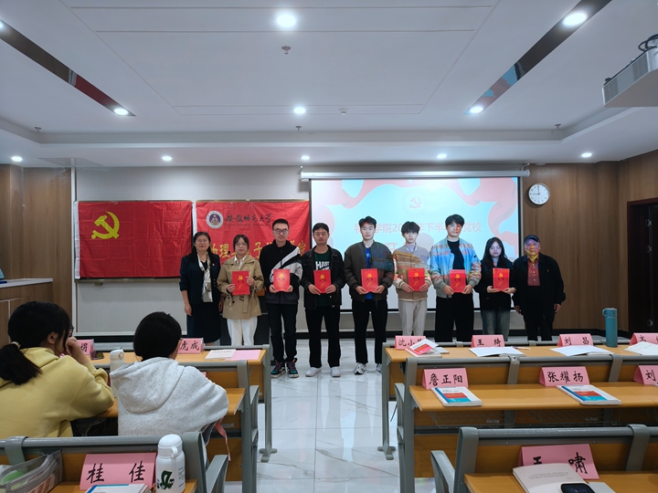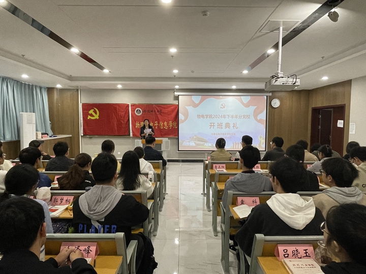 分党校第68期(院第36期)入党积极分子培训班开班典礼在花津校区清源楼C307多媒体教室召开。院党委书记、分党校校长李娟,全国教育系统关心下一代工作先进工作者、院关工委副主任、分党校指导老师陶绪德,培训班副班主任丁虎成出席开班典礼,培训班班主任邹孝龙主持开班典礼。伴随着嘹亮的国歌,开班典礼拉开序幕。李娟代表学院党委向参加此次培训班的全体学员表示热烈的欢迎和衷心的祝贺,并提出三点希望与要求:要强化政治意识,充分认识集中培训的重要性;要做到严于律己,自觉遵守分党校的各项规章制度;要践行知行合一,充分发挥模范带头作用。勉励学员们要做党的路线方针政策的宣传者;做朋辈帮扶、互助友爱的践行者;做就业创业、志愿服务国家需要的争先者;做钻研科学知识、勇攀科学高峰的探索者;做争创文明、养成良好行为习惯的带头者。学员代表黄宇轩、陈晓艺同学依次发言。李娟和陶绪德为培训班学员代表发放《先锋》学习手册并合影留念。