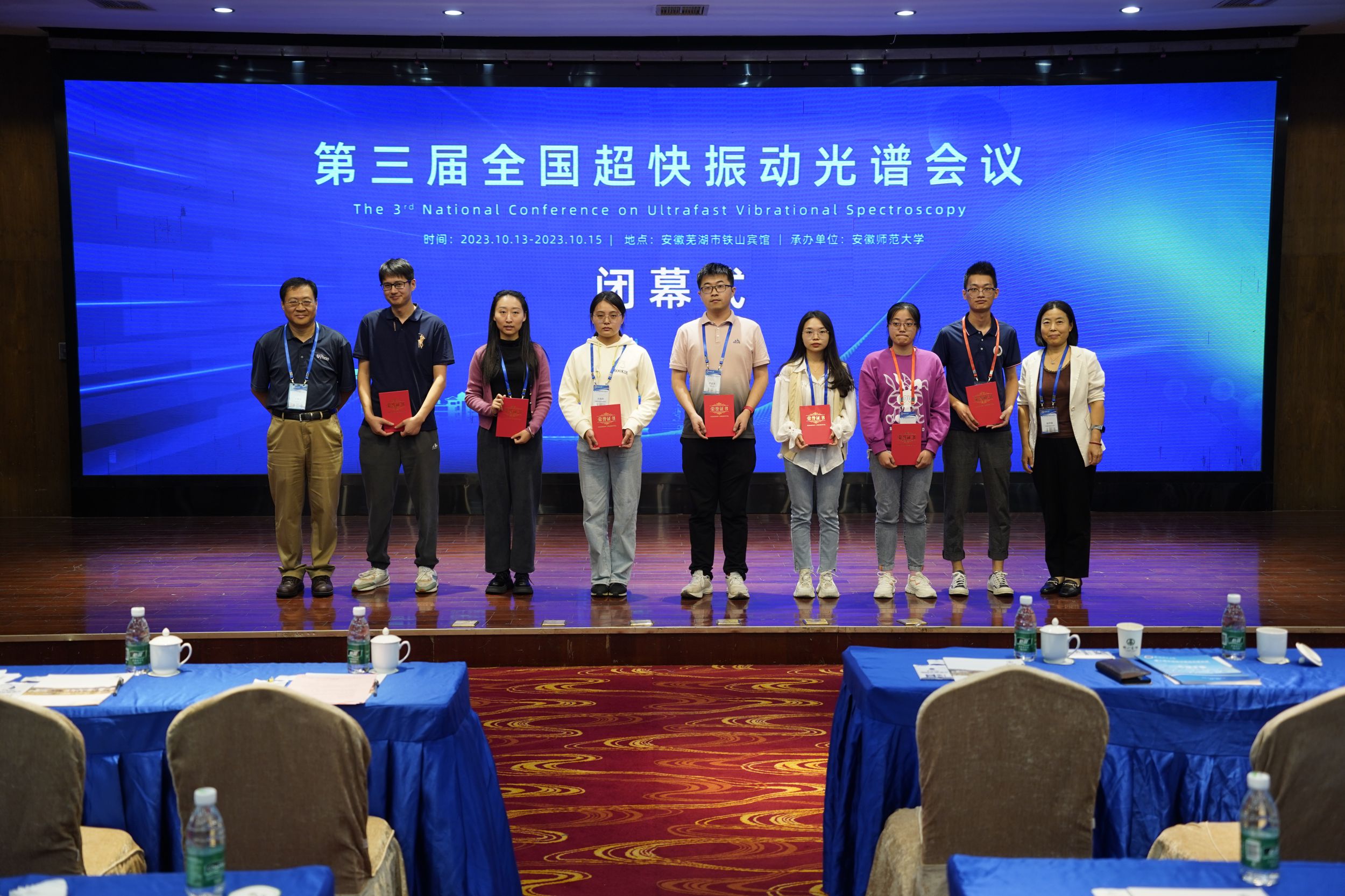 以及光电材料科学与技术安徽省重点实验室承办。会议旨在交流超快振动光谱领域最新研究进展,促进相关理论计算和实验技术的发展。会议在10月14日晚间邀请部分参会专家、博士后与研究生以墙报展示形式进行学术交流。经专家投票,总共有来自中国科学技术大学、南京大学、复旦大学、上海交通大学、北京师范大学、中国工程物理研究院流体物理研究所、中国科学院化学物理研究所的14位在读研究生与博士后荣获最佳墙报展示奖。