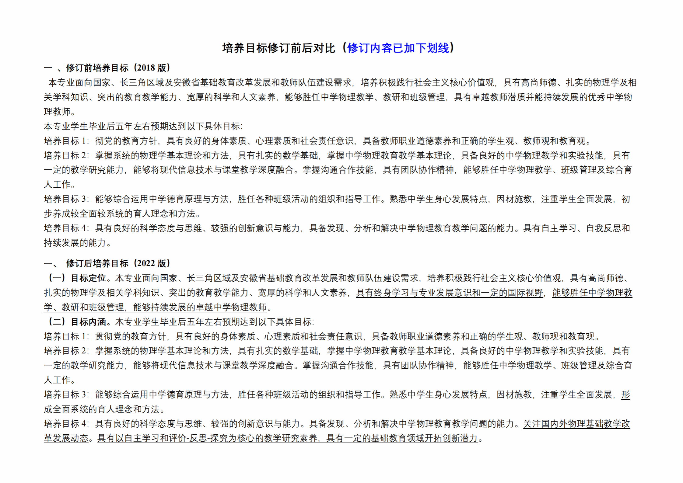 8 培养目标修订前后对比(修订内容已加下划线)
