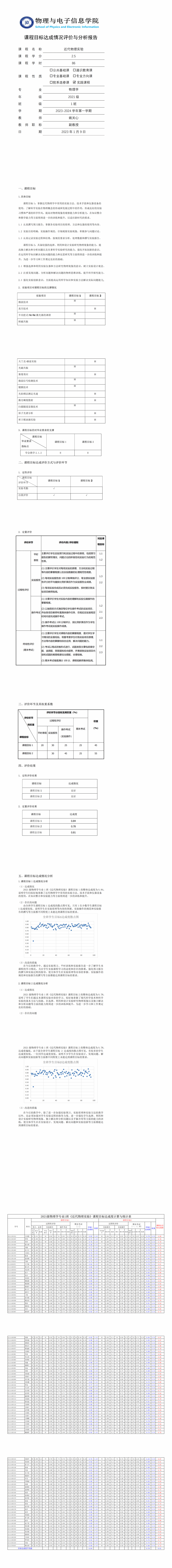 3.2实验课《近代物理学实验》三学期的课程目标达成报告
