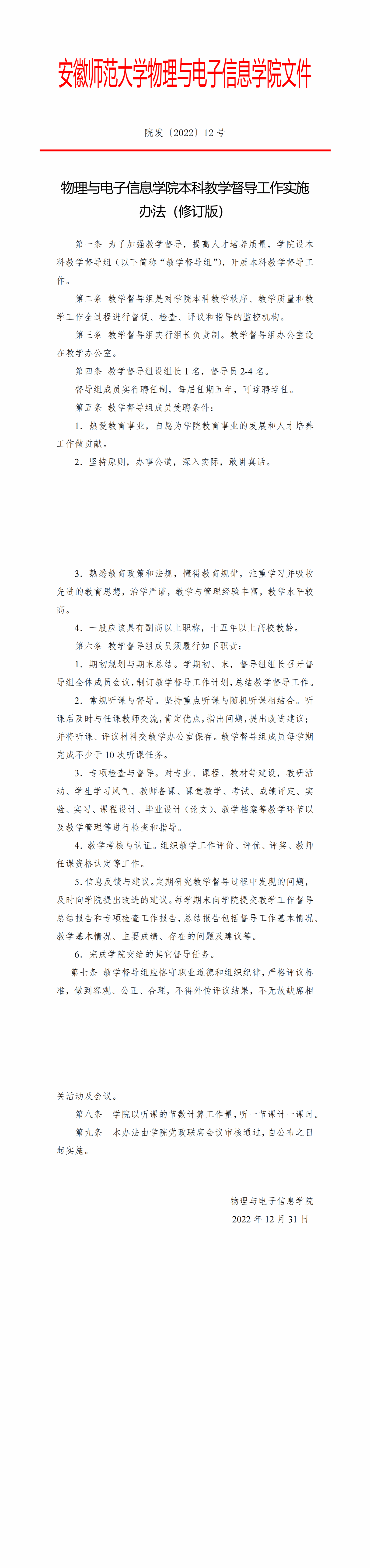 《免费色情片 本科教学督导工作实施办法(修订版)》及制订情况说明